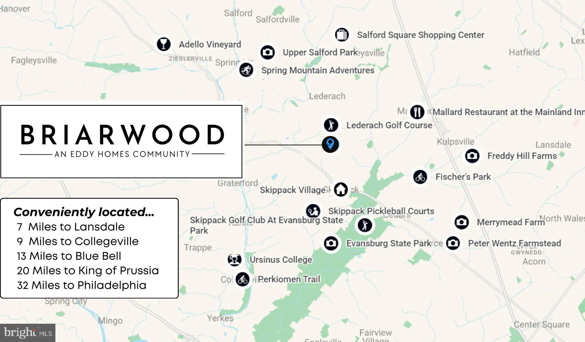 This is your last chance to claim a 2+ acre, tree-lined lot - the perfect blend of space, privacy, and elegance. This homesite offers the idyllic backdrop for Eddy Homes' stunning Bowmore Diamond Floorplan, where timeless design meets modern luxury. Step onto the welcoming front porch and into a grand two-story foyer adorned with 10' ceilings, gleaming hardwood floors & high-end finishes throughout. The heart of the home features an open-concept layout with a gourmet kitchen, morning room & expansive great room - perfect for everyday living and seamless entertaining. Host formal dinners in the elegant dining room or work from home in style in the private study with custom built-ins. The luxurious owner's retreat is a true sanctuary, complete with a sitting room, private balcony, spa-like bath & versatile flex space. Each additional bedroom offers its own en-suite bath and walk-in closet, while the convenient 2nd floor laundry adds ease to everyday life. The finished lower level offers a spacious rec room and ample storage. Outside, enjoy peaceful mornings or lively gatherings on the deck overlooking your expansive backyard. Located just one mile from charming Skippack Village, enjoy boutique shopping, top-rated dining & vibrant community events. With easy access to major highways, you're minutes from Collegeville, Blue Bell, and just 30 miles from Center City Philadelphia. Experience the perfect blend of sophistication, serenity & convenience. Don't miss this opportunity to own your forever home at Briarwood! Schedule a tour today!