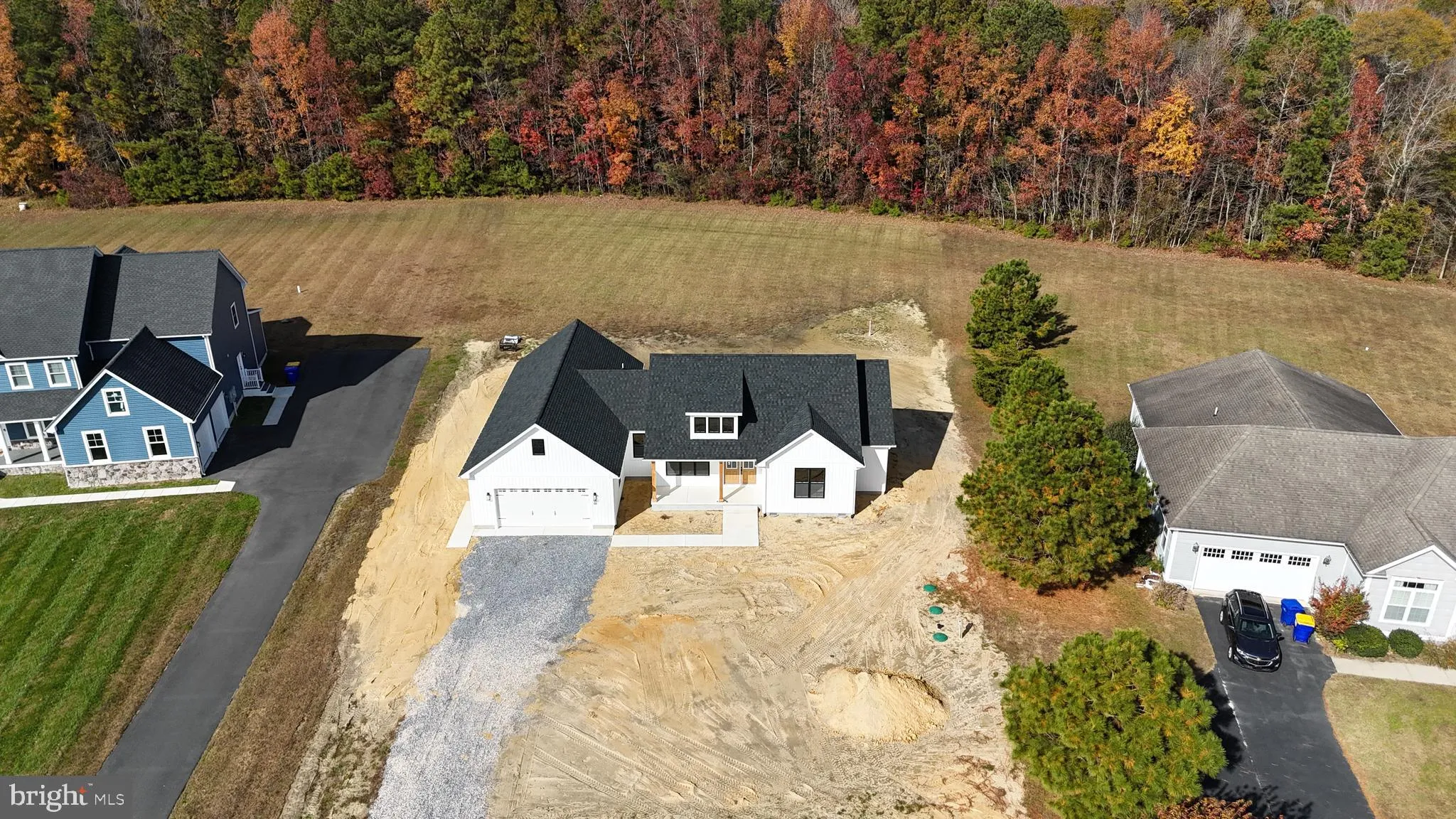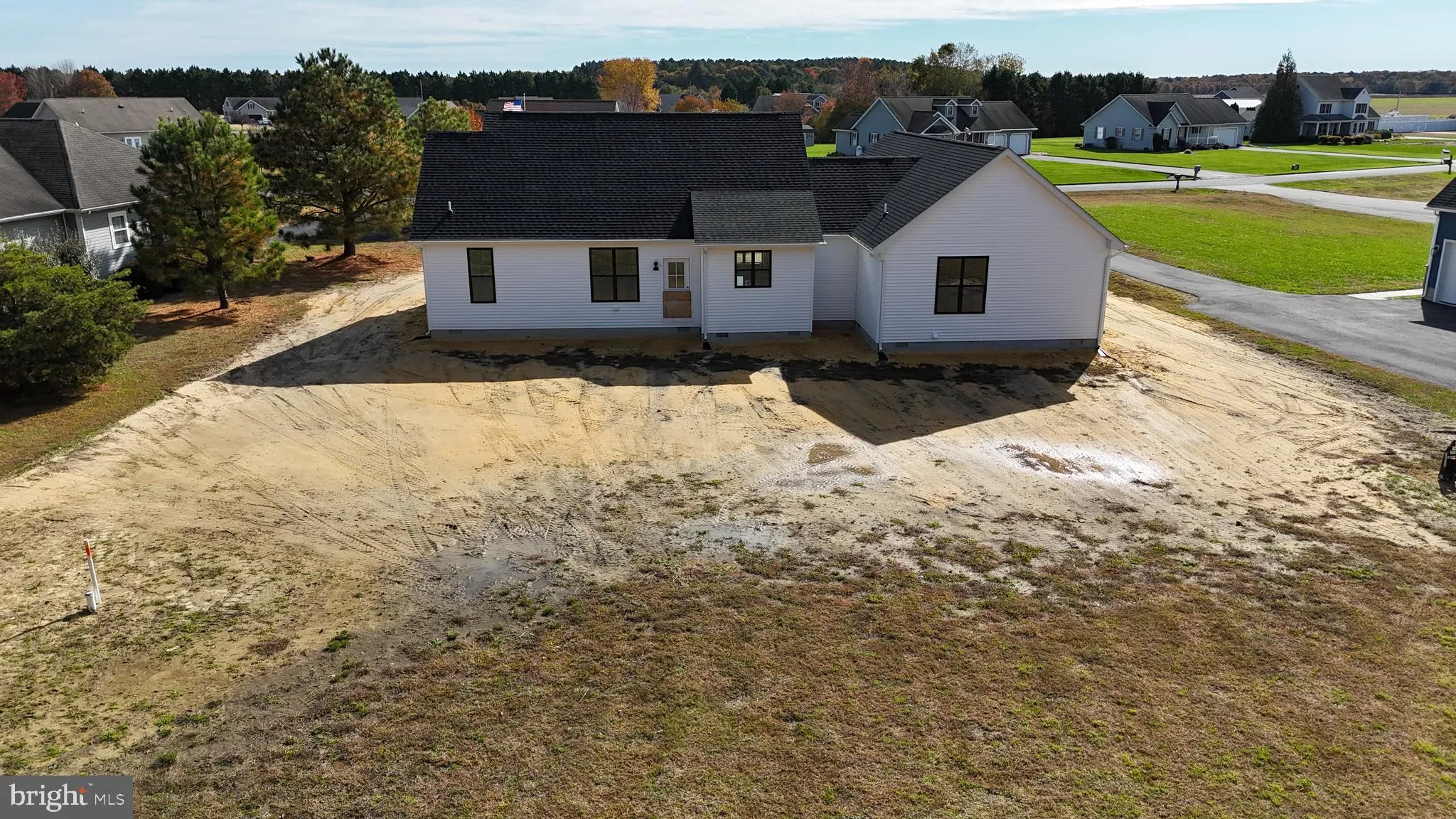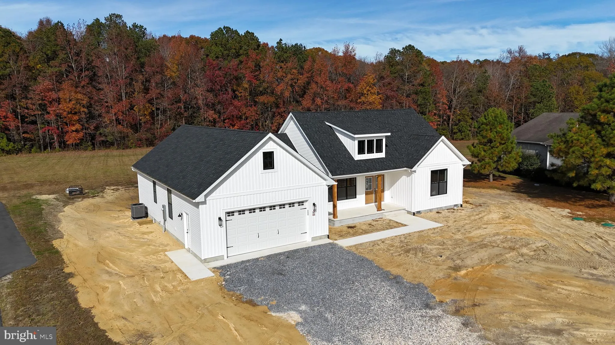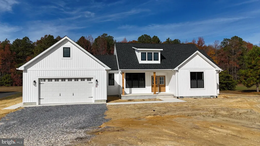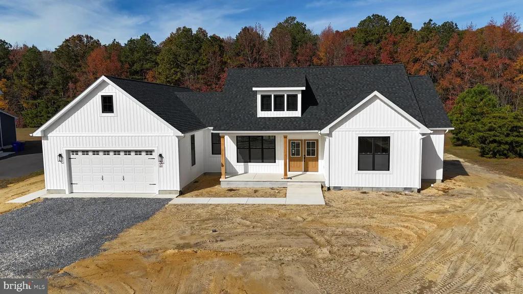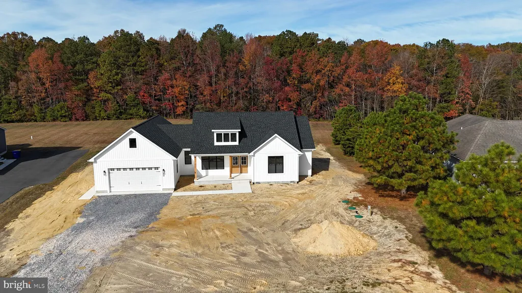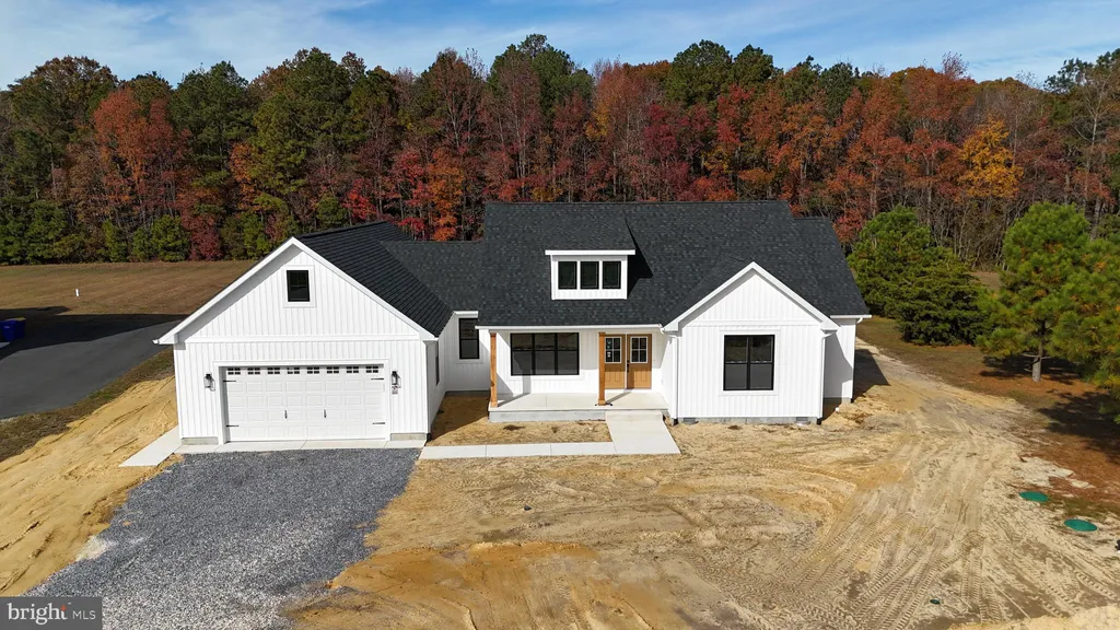 Welcome to 21952 Palomino Way - New Construction on 2.62 Acres in Saddlebrook! Don't miss this incredible opportunity to own a brand-new home in the desirable Saddlebrook community, conveniently located just east of Route 13 between Seaford and Bridgeville. Enjoy close proximity to shopping, schools, and all the recreational opportunities Sussex County has to offer. Built by a trusted local builder with over 35 years of experience, this thoughtfully designed home showcases quality craftsmanship and modern style throughout. The striking exterior features crisp white siding accented by black trim, windows, and roof - beautifully complemented by natural wood columns on the spacious front porch. Inside, you'll find a bright and open floor plan perfect for entertaining. The great room boasts a cathedral ceiling and flows seamlessly into the kitchen with granite countertops, center island, and adjacent dining area. The private primary suite offers a large walk-in closet and a luxurious bath with double vanity and custom tile shower. Two additional well-sized bedrooms and a full hall bath complete the bedroom wing, while a convenient half bath and a large combination mudroom/laundry room add practicality to daily living. Car enthusiasts and hobbyists will love the oversized 24'x24' attached garage - truly spacious enough for two vehicles and more. Situated on a generous 2.62-acre lot, this home also includes a paved driveway for added convenience.