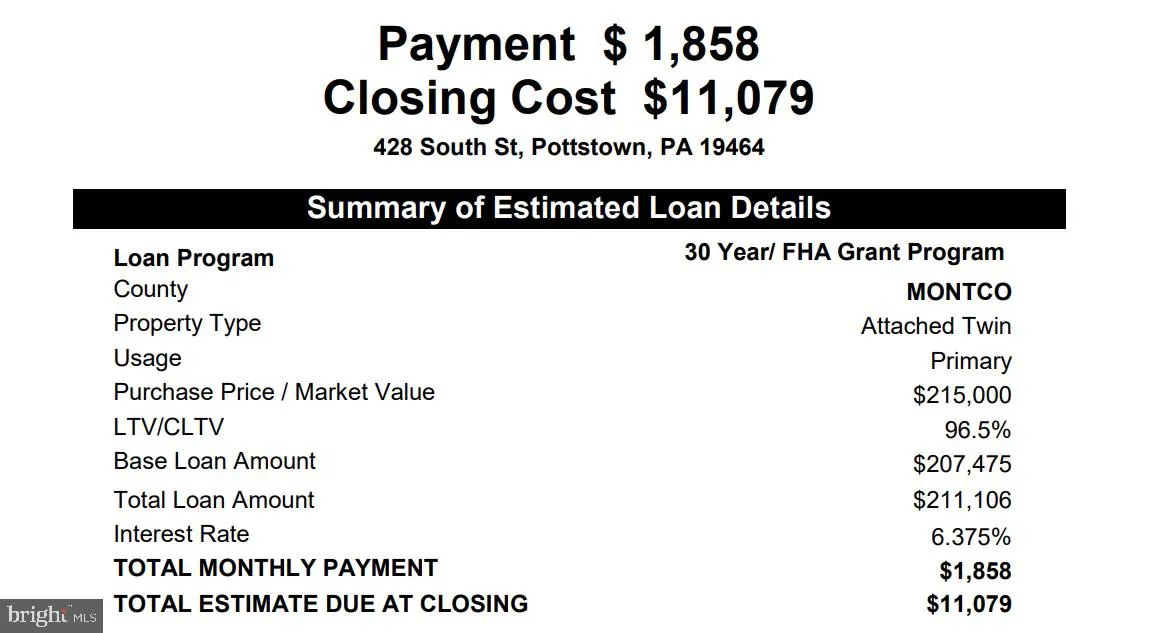 INVEST IN THIS 5-BEDROOM 2 FULL BATHROOM HOME that could result in an almost 20% CASH-ON-CASH RETURN, and a CAP RATE OF OVER 11%, Montgomery County Housing Authority pays $2,980 per month for 5-bedroom twins and end of rows in Pottstown, After subtracting $331 per month for utilities this home nets $2,649 per month in rent and will cash flow over $800 per month, Check out the investment performance images in the photos, and even more details in the documents section, CALL TO LEARN MORE ABOUT HOW MCHA SUBSIDIZED RENTALS (aka Section 8 rents) WORK - FOR OWNER OCCUPANTS CALL TO LEARN ABOUT DOWN PAYMENT ASSISTANCE, GRANTS, AND FORGIVABLE LOANS that make this home even more affordable with mortgage interest rates approaching 6% (Check out the estimate of closing costs and payments in the online documents), SINGLE-FAMILY SEMI-DETACHED home, MOVE-IN- CONDITION, Low maintenance brick exterior, vinyl replacement windows, reliable warm hot water baseboard heat WITH GLEAMING NEW THERMO-DYNAMICS BOILER and BECKETT BURNER INSTALED in DECEMBER 2024, and upgraded 200 amp electric service in an excellent Pottstown location only a block from downtown with new restaurants, pubs, and quaint shops that are all part of revitalizing Pottstown, This home is very inviting and bright and would be appealing to proud owner-occupiers or the best of would-be tenants, Desirable features of this home typically found in modern homes include lots of natural light, handsome exposed brick wall, recessed lighting, ceiling fans in all bedrooms, and ample electrical outlets in all rooms, Large bright kitchen with plenty of cabinetry and a convenient first floor half bath, decorative fireplace, front and rear staircases, and a bright laundry/sunroom overlooking the private yard, Appliances included - FLAT TOP RANGE, SIDE-BY-SIDE REFRIGERATOR and DRYER, Full basement with easy Bilco door access, Off-street parking, Very short walks to Schuylkill River trails, community park and very easy access to Routes 422 and 100, (If a garage is added, total monthly rent would increase by $300 per month and total monthly cash flow would be even higher and more attractive at around $1,100 per month)