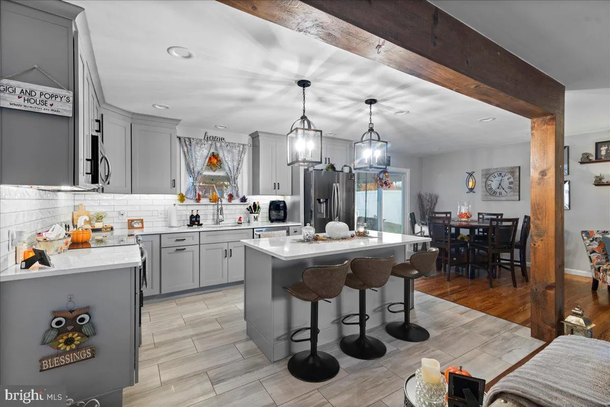 Welcome Home !!! Souderton Borough. 4 bedrooms and 1.5 baths, 1-car garage, 1,643 interior sqft, sitting on .3 acres. The kitchen is recently updated and the Living Room w/fireplace and Dining Room create an entirely open feel. New cabinets, Quartz countertops, lighting, Stainless Steel appliances, classic white tile backsplash, under counter lighting, recessed lighting, island with hanging light fixtures, beautiful tile flooring stretching into the powder room and laundry room. All of the original wood flooring t/o the house has been professionally refinished. Located close to the restaurants and shops of downtown Souderton. In a few turns you will be on Route 309. Make an appointment to see this beautiful home