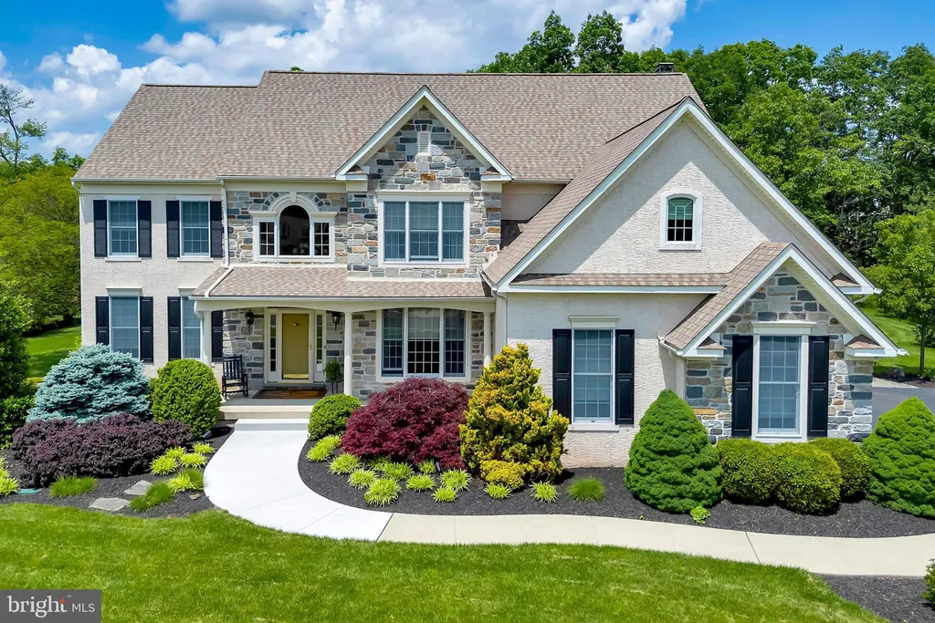 Welcome to this stunning 4-bedroom, 2.5-bath home built by WB Homes in Lower Salford Township, offering over-the-top upgrades and luxury details throughout - perfectly set on a beautifully landscaped 1.9-acre lot. Step into the grand foyer with porcelain tile, an elegant ceiling medallion, and an impressive chandelier. The formal living and dining rooms boast rich hardwood flooring, wainscoting, coved ceilings, and a dazzling Swarovski chandelier. The private office is ideal for remote work with hardwood floors and a ceiling fan. The gourmet kitchen is a chef's dream: hardwood floors, granite countertops, Sub-Zero refrigerator and wine fridge, GE Monogram 6-burner gas cooktop with stainless hood, GE Profile double ovens, microwave, wine refrigerator, under-cabinet TV, and custom lighting. The family room impresses with an 18-ft ceiling, a wall of windows, custom draperies, a gas stone fireplace, cherry wood built-ins, surround sound, and gleaming hardwoods. Upstairs, all four bedrooms feature plush carpeting and ceiling fans. The luxurious primary suite offers a coved ceiling, three closets, and a spa-style bath with a jetted tub, tile shower, double vanity, and private water closet. A second full bath includes a walk-in tiled shower, double vanity, large closet, and custom finishes. Additional features include: Two staircases (foyer and family room), Hunter Douglas Duette shades throughout. 3-car garage (two-car plus separate one-car section) with Keyless garage entry 2-zone gas heating & electric A/C, Upgraded Kohler fixtures & lighting throughout, Full basement with tankless water heater, 2 high-efficiency gas furnaces, water softener, whole-house air filter & humidifier. The Outdoor living is a dream: Brazilian mahogany deck, flagstone patio, wood-burning stone fireplace, water feature, professional lighting, lawn irrigation system, two sheds, and fenced-in yard - perfect for pets!, Ring doorbell, and full security system included. This exceptional home combines timeless elegance with modern comfort in a premier neighborhood. Schedule your private showing today!