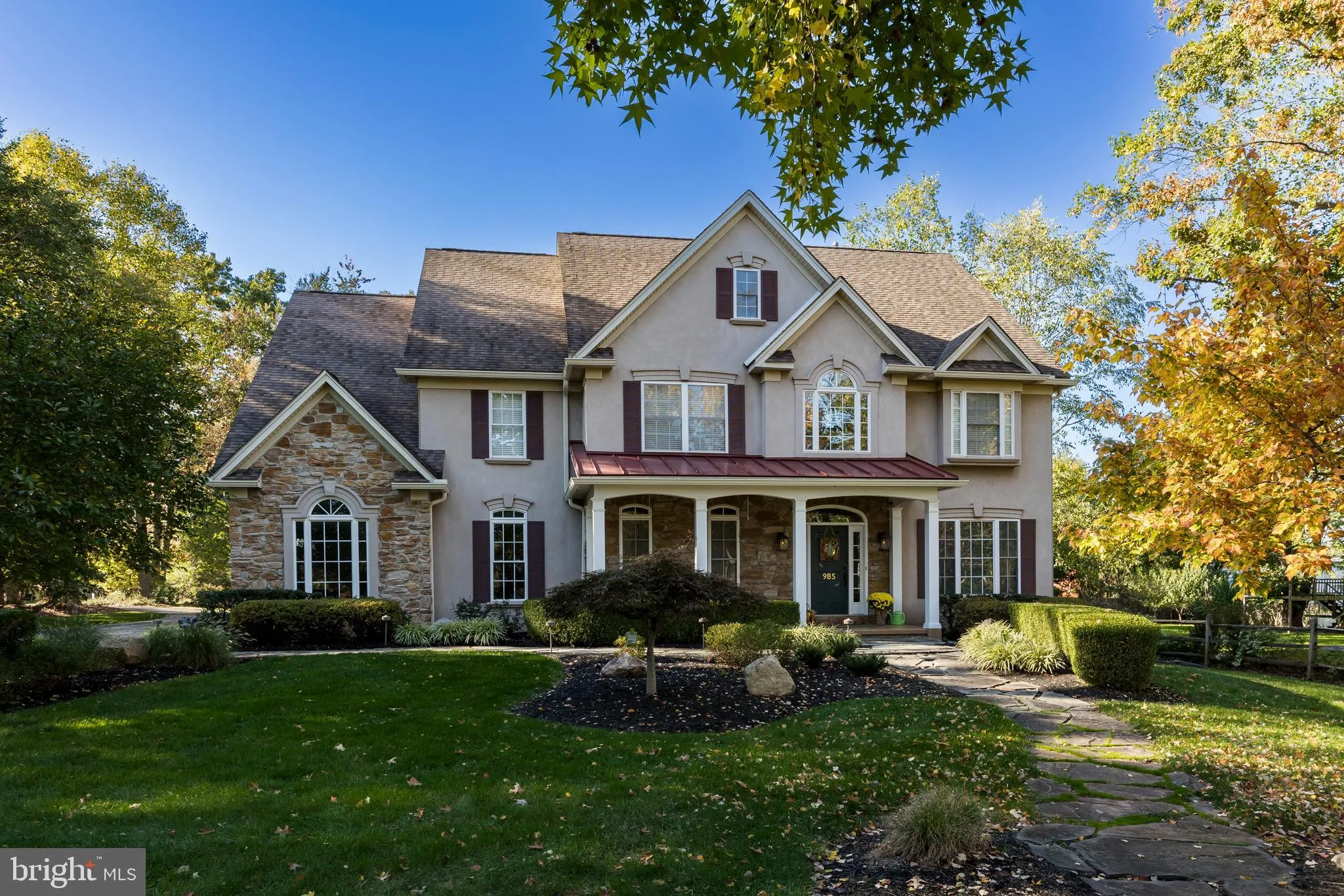 Welcome home to 985 Clahor Ave in the sought-after location of the Borough of Collegeville, Perkiomen Valley school district. This custom-built home is truly a standout. Built in 2002, this home offers PLENTY of space with 4 bedrooms, 3 1/2 baths and a surprise 3 rd floor retreat all conveniently located to Collegeville s desirable amenities. As you pull into the driveway, you'll note the meticulous care of the property, evidenced by the custom landscaping, thoughtfully designed front yard, and truly charming front porch. As you enter the front door, it will be apparent that the current homeowner is an Interior Designer, demonstrated by the detailed design choices that make this house warm and inviting. To your left find the large formal dining room ready for holidays and entertaining. To your right a private formal living room that rivals any model home. Continue through the arched entryway to find your sundrenched, two-story family room, highlighted by a floor to ceiling stone, gas fireplace. This space opens to a very large and luxurious kitchen which boasts a breakfast nook and extended island for casual seating. A gas cooktop, stainless appliances, granite countertop, double wall oven, stone herringbone backsplash, and tons of beautiful cabinetry along with a HUGE walk-in pantry for storing all your kitchen gadgets rounds out this space. Off the kitchen you ll find one of the largest and most welcoming home offices you can envision, perfect for working from home. Finishing the main level are the half bath, the entry to the garage, sliders to the deck and exit to the rear patio. The upstairs brings you the generous primary bedroom with sitting area along with a luxurious ensuite bathroom of your dreams. Dual oversized vanities, separate shower with glass doors and decorative tile, freestanding Pearl heated bathtub, radiant heat tile floor, accented by a beautiful chandelier and all leading to a swoon worthy walk-in closet with a custom organization system. From the owner s suite, walk up to the 3rd floor private retreat with bamboo hardwood flooring and an electric fireplace, perfect for another home office, theater room, workout space, or whatever suits your needs. The 3rd floor also boasts a large, walk-in storage space for stashing seasonal decor, luggage, or other infrequently used items. Back to the 2 nd floor, two additional bedrooms share a custom designed Jack and Jill bathroom featuring a private vanity per bedroom and shared tub and shower. The final bedroom includes an ensuite bathroom, making it an ideal space for hosting overnight guests. Completing the 2 nd floor is a large laundry room with storage cabinets and a utility sink, which means no more lugging dirty laundry up and down stairs. The lower level of this home boasts 10-foot ceilings, ready to be finished with endless possibilities. The spacious rear and side yards with mature landscaping are ready for play, relaxation, and entertainment. Highlighted by fencing, custom storage shed, a paver patio and composite deck with a seasonal gazebo, you will undoubtedly look forward to warmer days to enjoy this outdoor retreat. Bonus features include dual zoned HVAC, new water heater 2021, new sump pump 2021 with water diversion system and hydraulic back up, new sliders to deck and new back door to patio 2021, new dishwasher 2020, new front gutters and freshly painted. This move-in-ready home is the one you have been waiting for! Make your appointment today for a private tour.